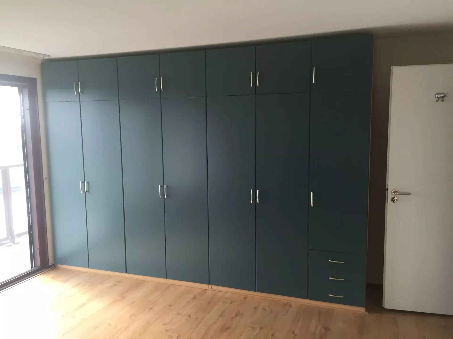 Steeds vaker komt het voor dat als wij een woning spuiten. Alle ( inbouw) kasten en keukens worden meegespoten met de zelfde verf.