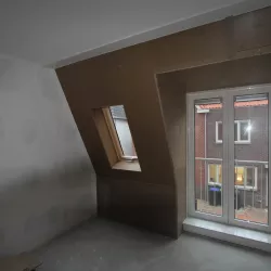 Deze week zijn we gestart met de afwerking van een van woningen van het nieuwbouwproject Angstelhof in Baambrugge. Hier gaan we de bruine houten aftimmering van het dakbeschot verwijderen en vervangen voor gipsplaten. Stukadoren en spuiten van alle wanden en plafonds van de gehele woning. Trappen en houtwerk worden ook gespoten.
